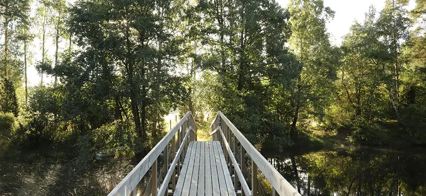Längs leder och stigar kan du vandra, cykla eller paddla, och låta naturens ljud ta över.